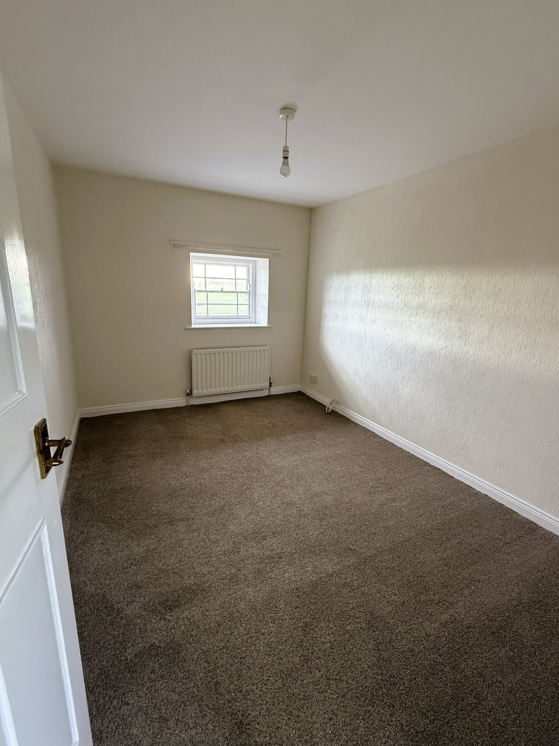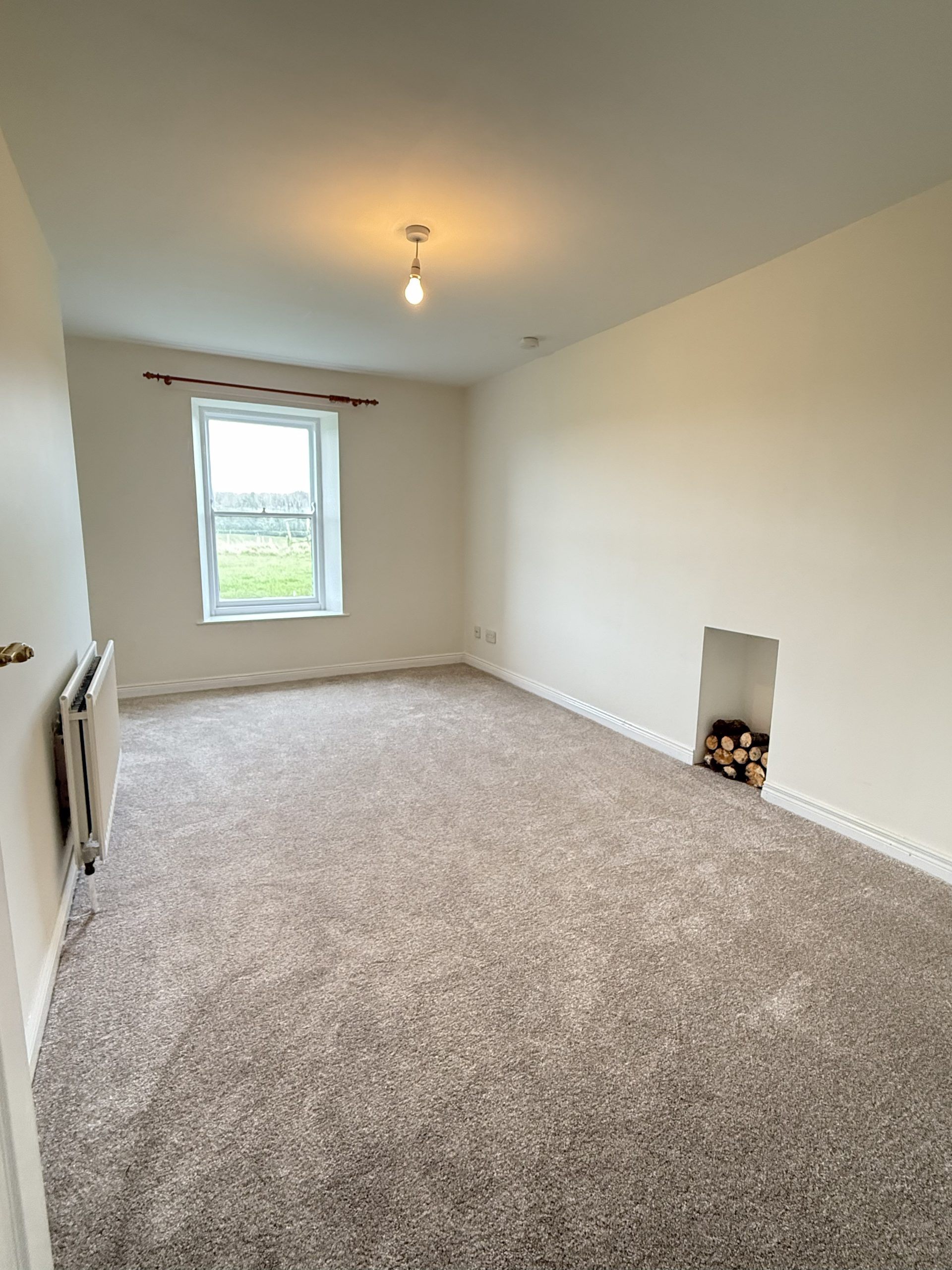 Open fire with decorative surround. New fitted Carpet
