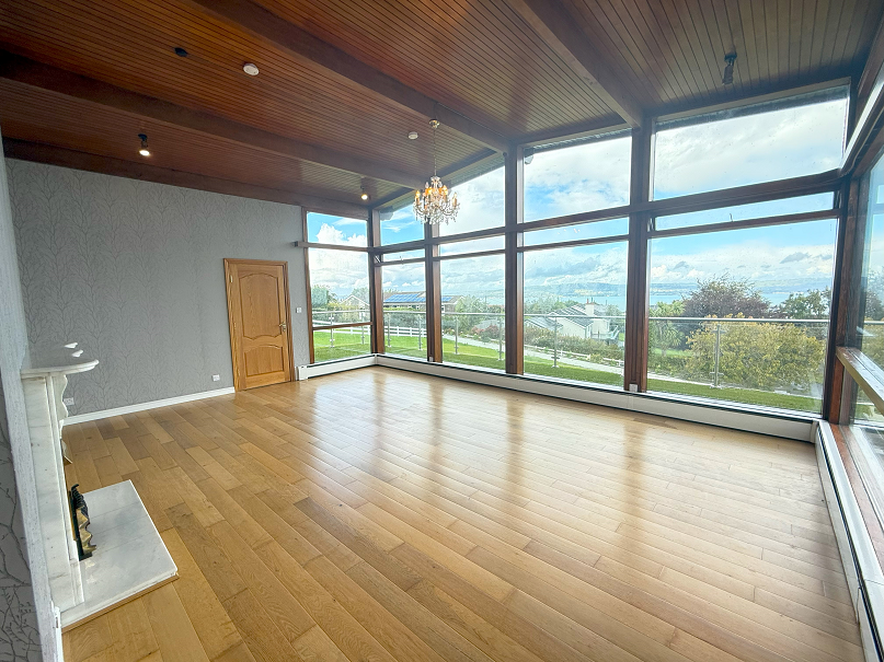 Stunning views over Belfast Lough to Antrim Coastline, oak floor, steps up to Sitting Room.