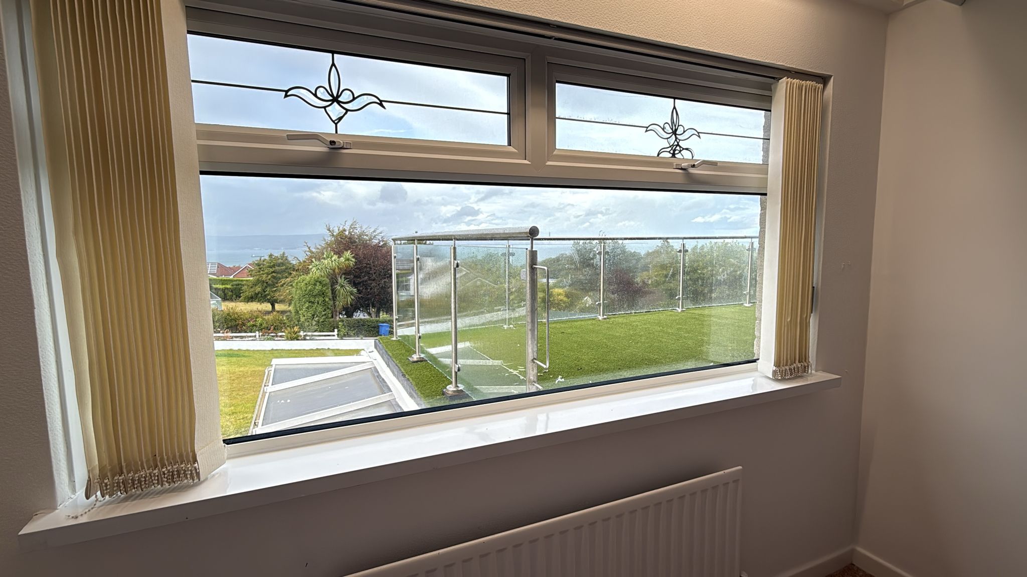 The house itself is laid out over two levels. It sits on a fabulous, elevated site with views across the Irish Sea. The gardens are laid in lawns with patio space. There is a double garage, oil fired central heating and double-glazed windows in the property.